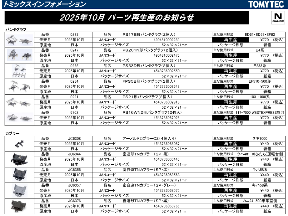 ■列車無線アンテナ、ヒューズボックス、列車種類選別装置はユーザー取付け