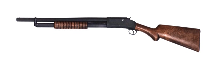 西部劇の舞台となる1860年代頃のショットガンは、銃身本数と装弾数が一致する構造が主流でした。その後、単銃身で繰り返し射撃が可能なリピーティングショットガンが登場します。その代表格が、銃器設計の巨匠ジョン・M・ブローニングによる M1897 です。ポンプアクション方式、外装式ハンマー、チューブ型マガジンを備えた革新的な設計で、仕上げを実用的な範囲に抑えることで低コスト化にも成功しました。警察や軍に広く採用され、第一次世界大戦ではアメリカ軍が塹壕戦に投入し、その威力を存分に発揮しました。