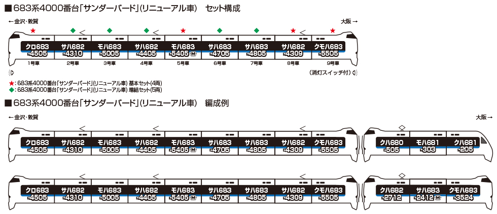 同時発売予定の〈10-2149 681系「サンダーバード」(リニューアル車) 増結編成〉や令和8年2月発売予定の〈10-2144 683系2000番台「能登かがり火」〉などと併せて、実車同様の12両編成をお楽しみいただけます。