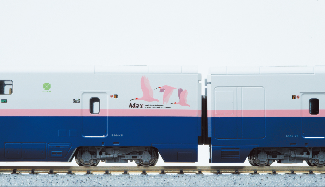 ②E4系新幹線「Maxとき」・新潟新幹線車両センター所属のP9編成を製品化・ピンク色に変更された帯はもちろん、3羽の朱鷺が描かれた側面のロゴマークを的確に再現・車体ナンバー、車体表記を美しく表現(また7号車・8号車の客扉横の案内ステッカーを印刷で表現)