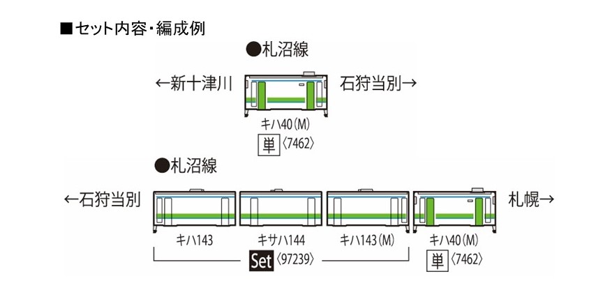 ・前面表示部は交換用「学園都市線」「浦臼-札幌」「ワンマン浦臼-石狩当別」「石狩当別-札幌」印刷済み別パーツを付属