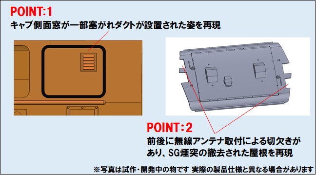 ・屋根板は前後に無線アンテナを避ける切欠きのある姿を新規製作で再現