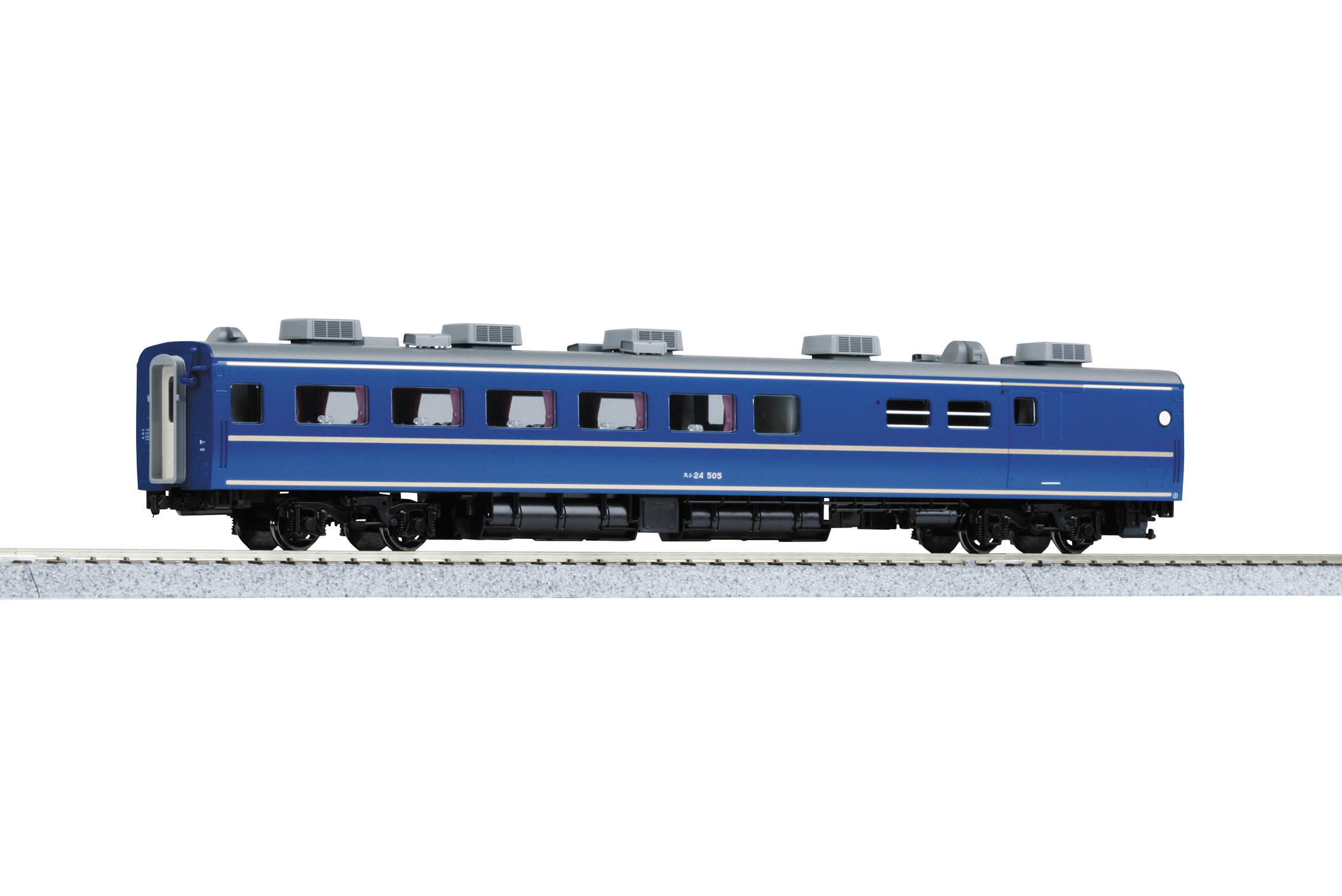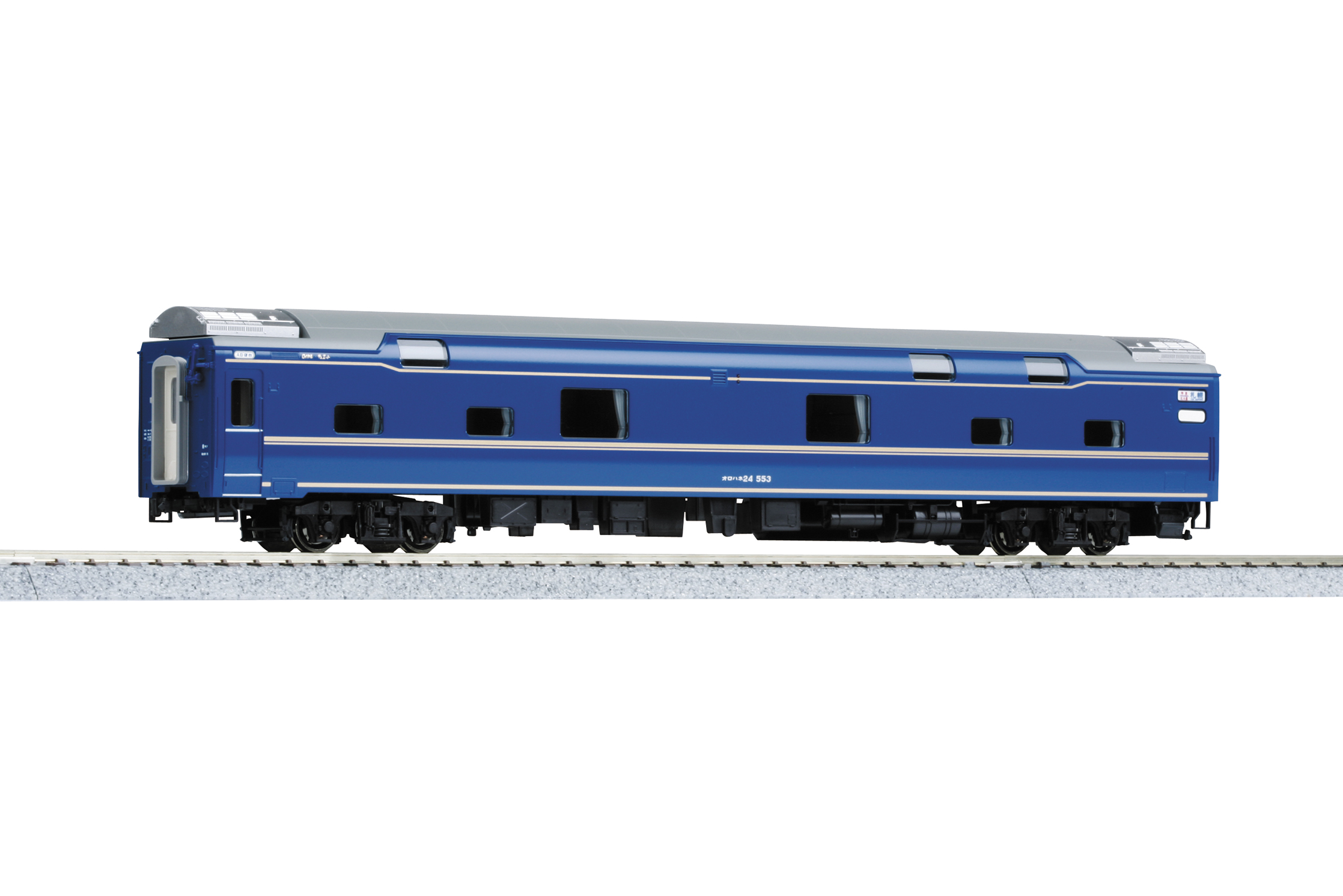 ①平成10年代のJR東日本尾久客車区所属車を製品化。オリジナルの24系とは異なる個性あふれる窓配置と、個室で構成された「北斗星」ならではのブルー車体に金帯を締めた車両を再現