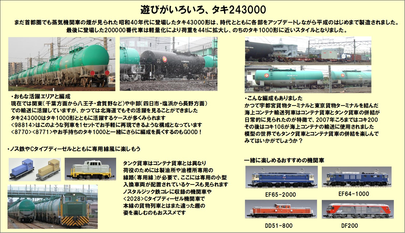 ・タキ243646・243651・243668はタンク体が黒色の車両を再現