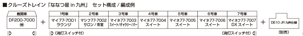同時再生産予定の〈7011-4 DE10 JR九州仕様〉や好評発売中の〈10-2090 787系「36ぷらす3」〉など九州地方で活躍する車両製品とあわせてお楽しみいただけます。