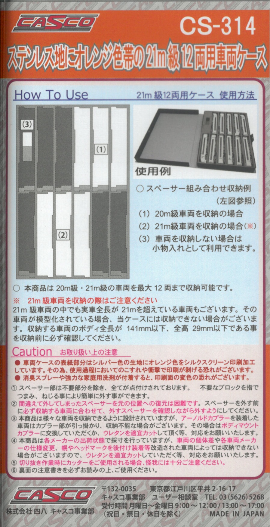 キャスコ CS-314 ステンレス地にオレンジ色帯の21m級12両用車両ケース 硬質・LG