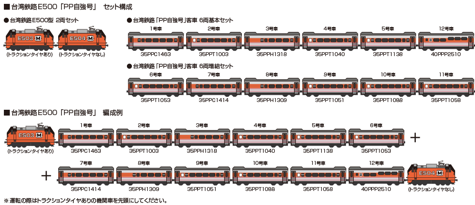 ◆最新形の電気機関車E500型と従来のE1000型付随車で組成される「PP自強号」を製品化いたします。