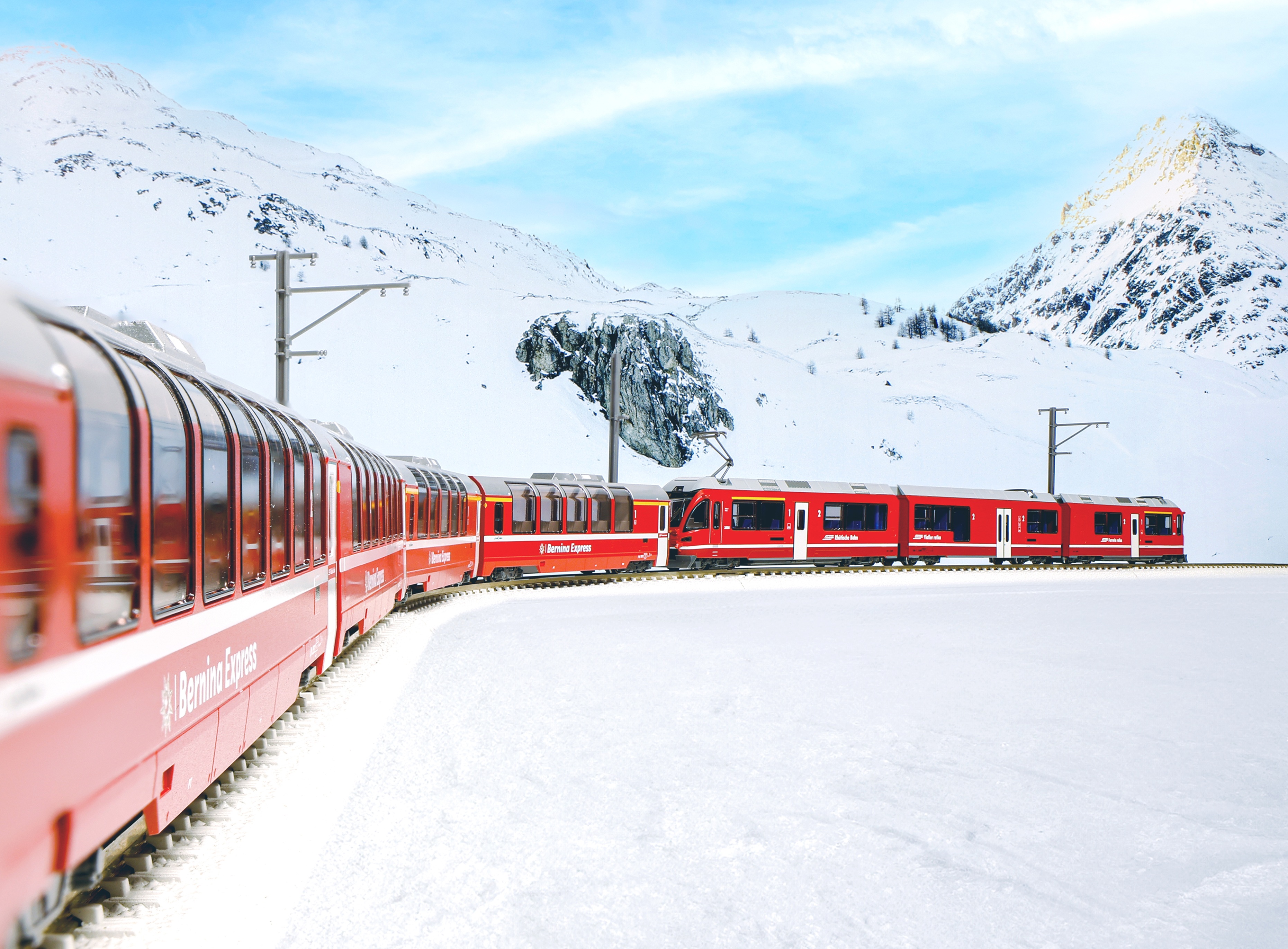 車体肩部まで広がる優美なパノラマガラスの窓が特徴で、2008年にユネスコ世界遺産に登録されたアルブラ線・ベルニナ線を通り、アルプ・グリュムやラーゴ・ビアンコといった絶景を巡ります。