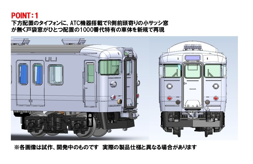 ●タイフォンの位置が低い前頭部や前頭部戸袋窓配置が特有のクハの車体を再現