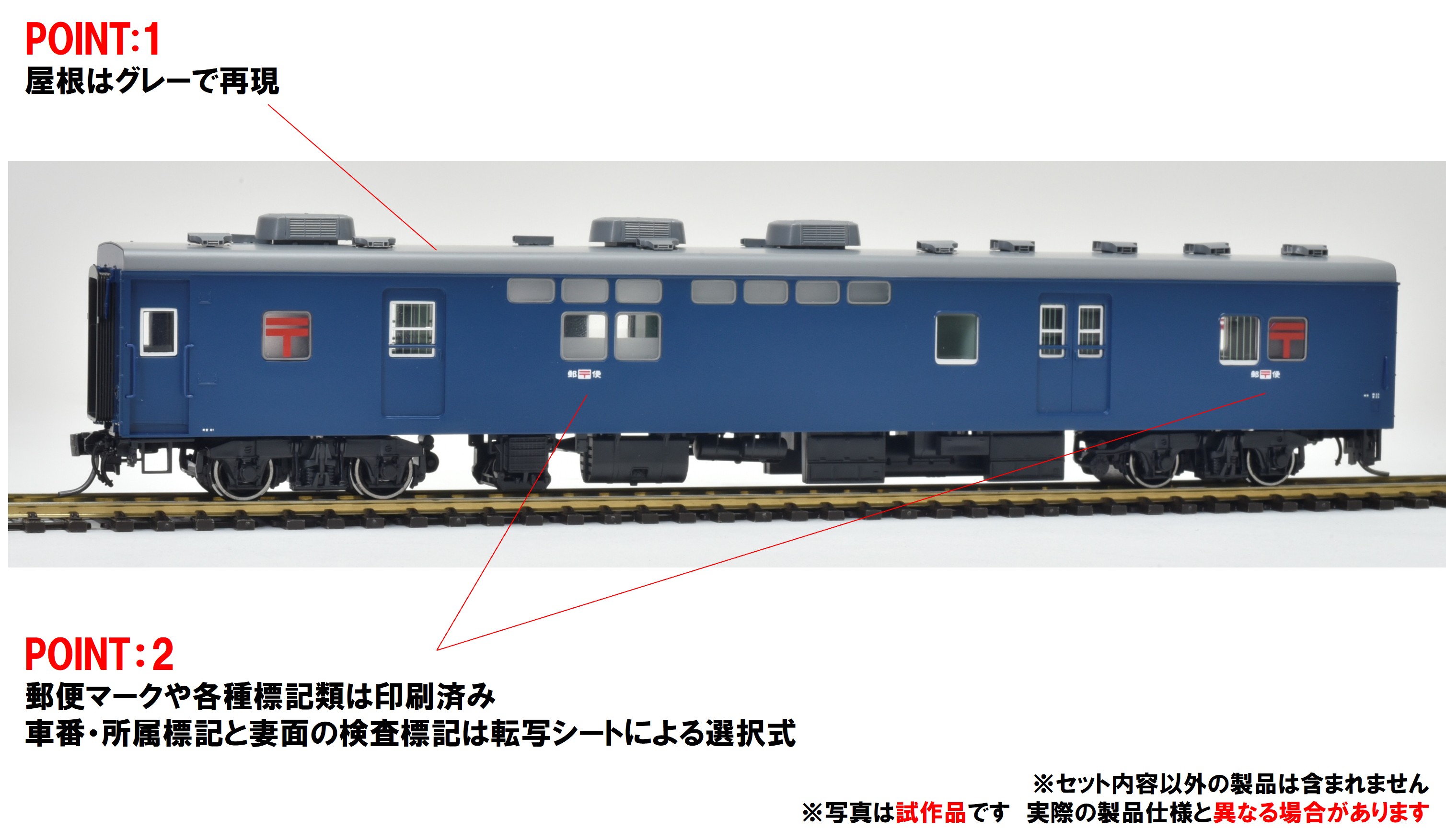 手すり・幌吊り、エアホース、ベンチレーター・台座、ブレーキ配管など・電気暖房トランス、カバー付燃料タンク、室内照明ユニットジョイナー、転写シート