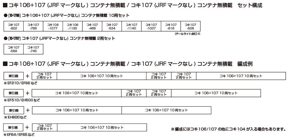 カトー 10-1796 コキ106+107 JRFマークなし コンテナ無積載 10両セット