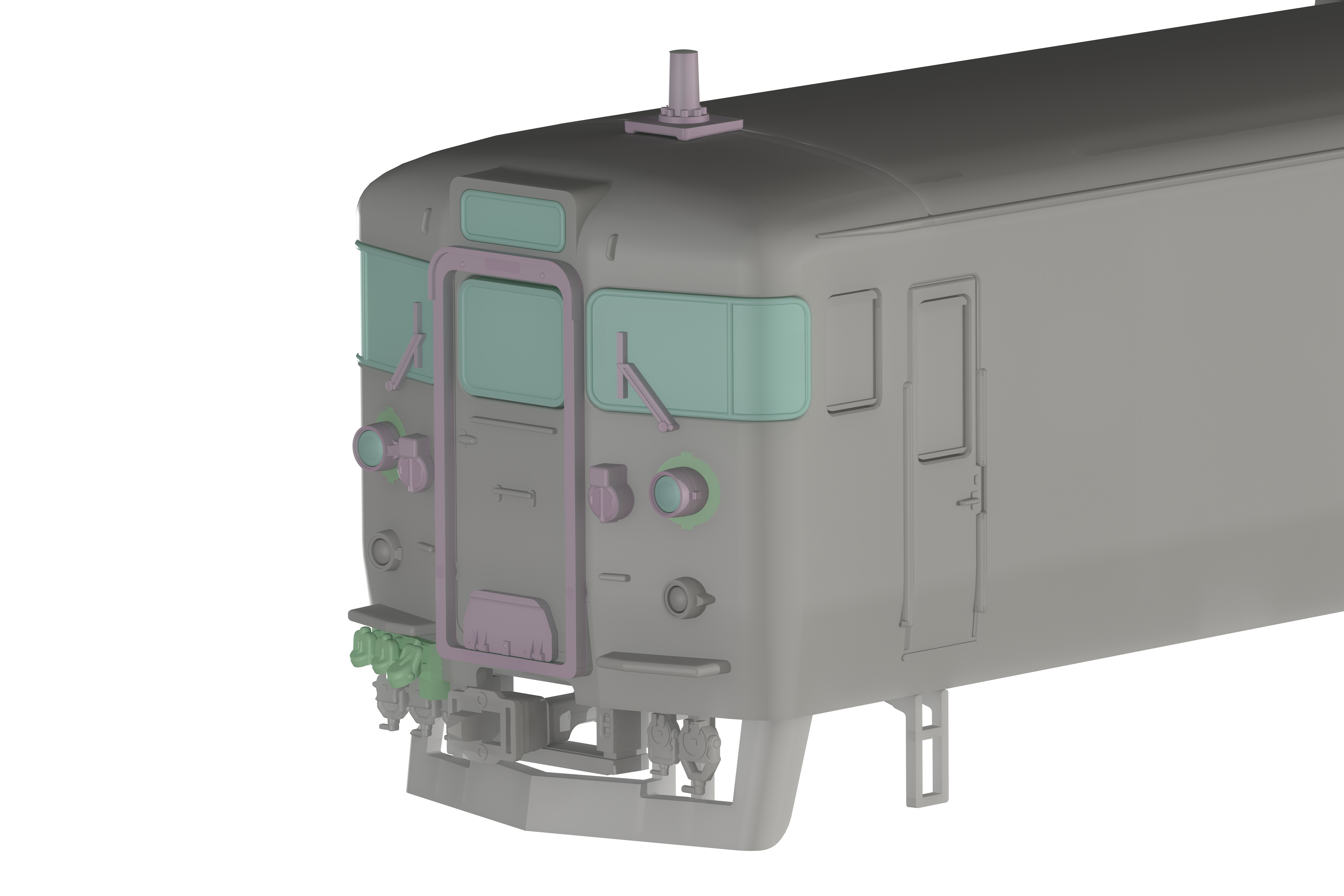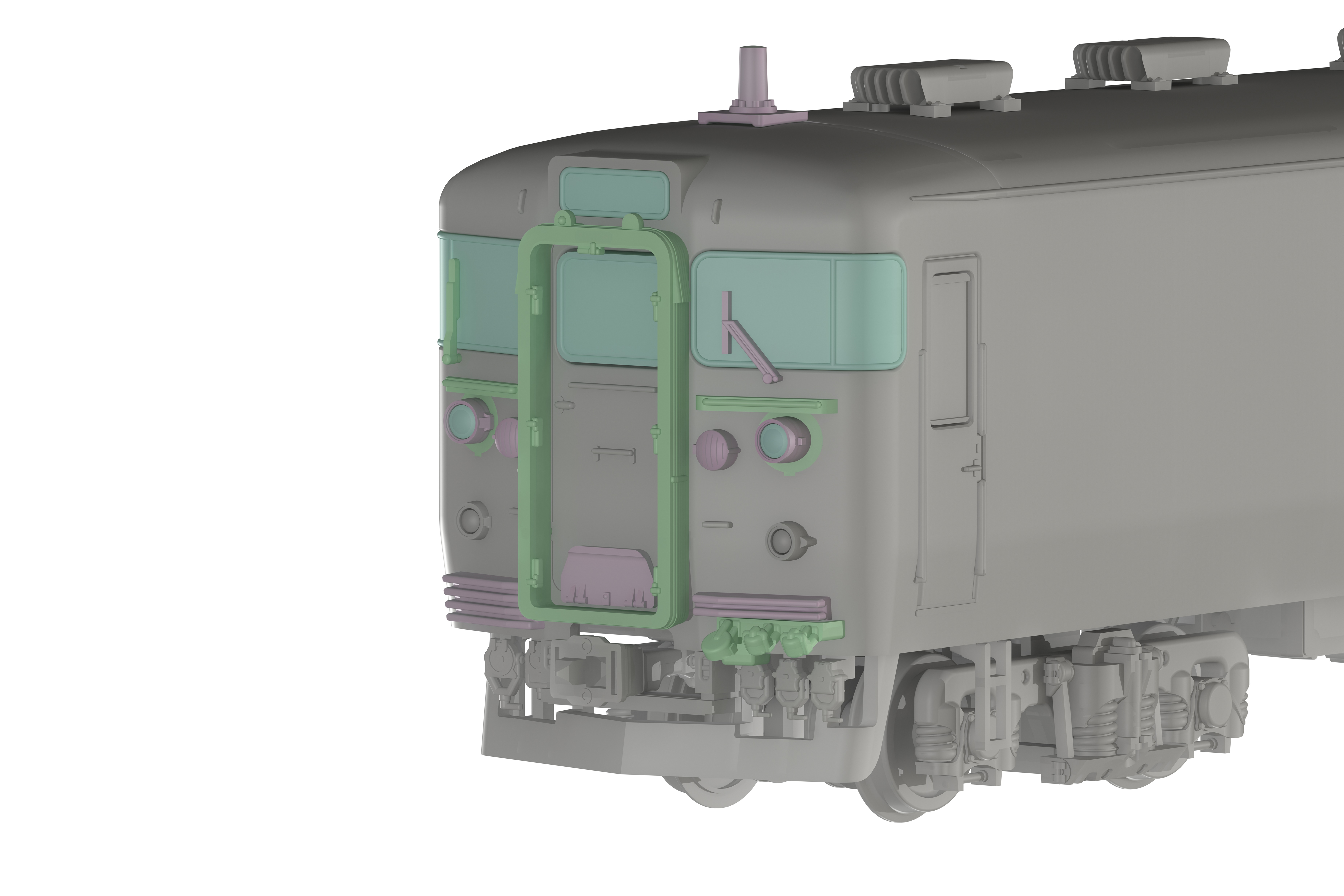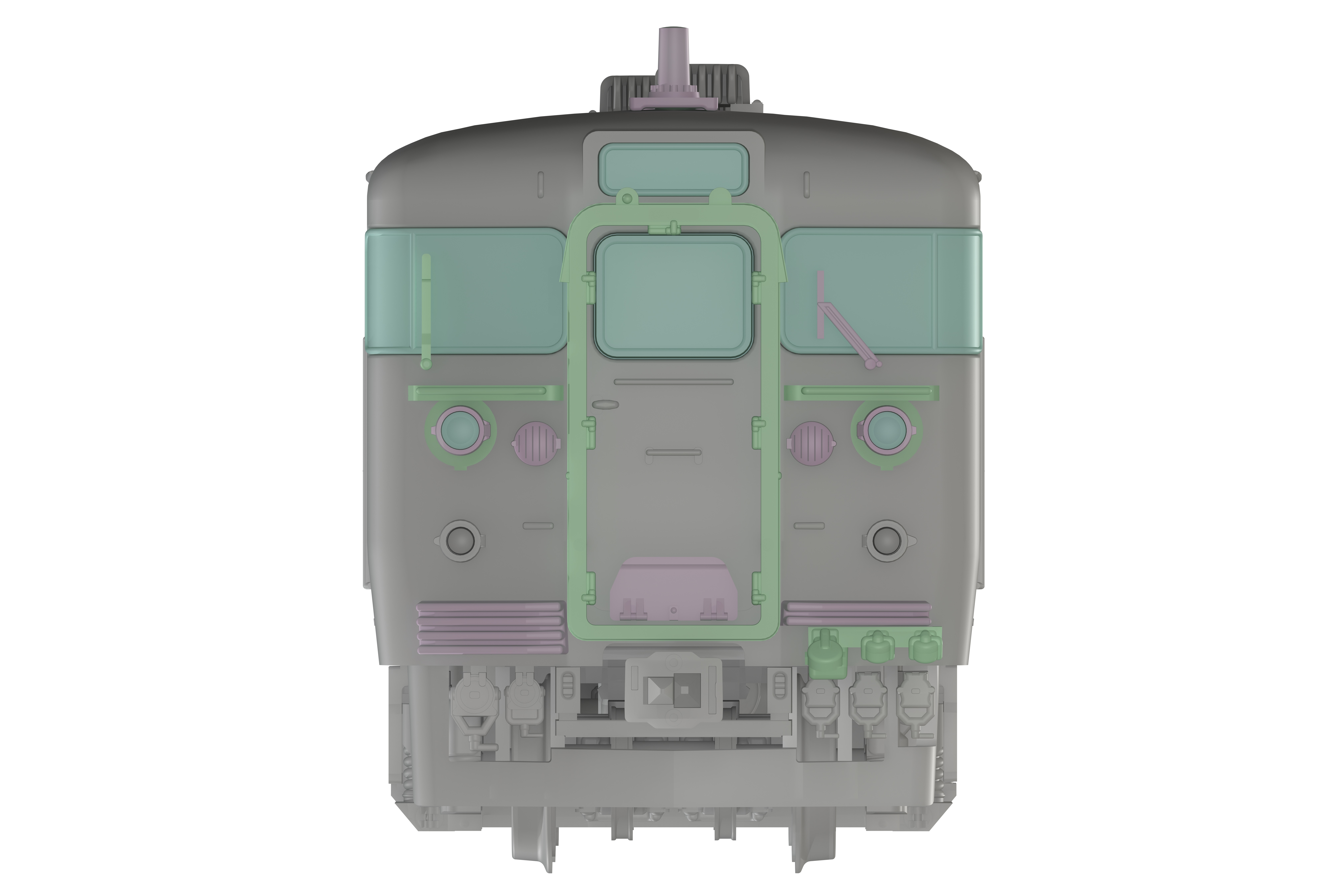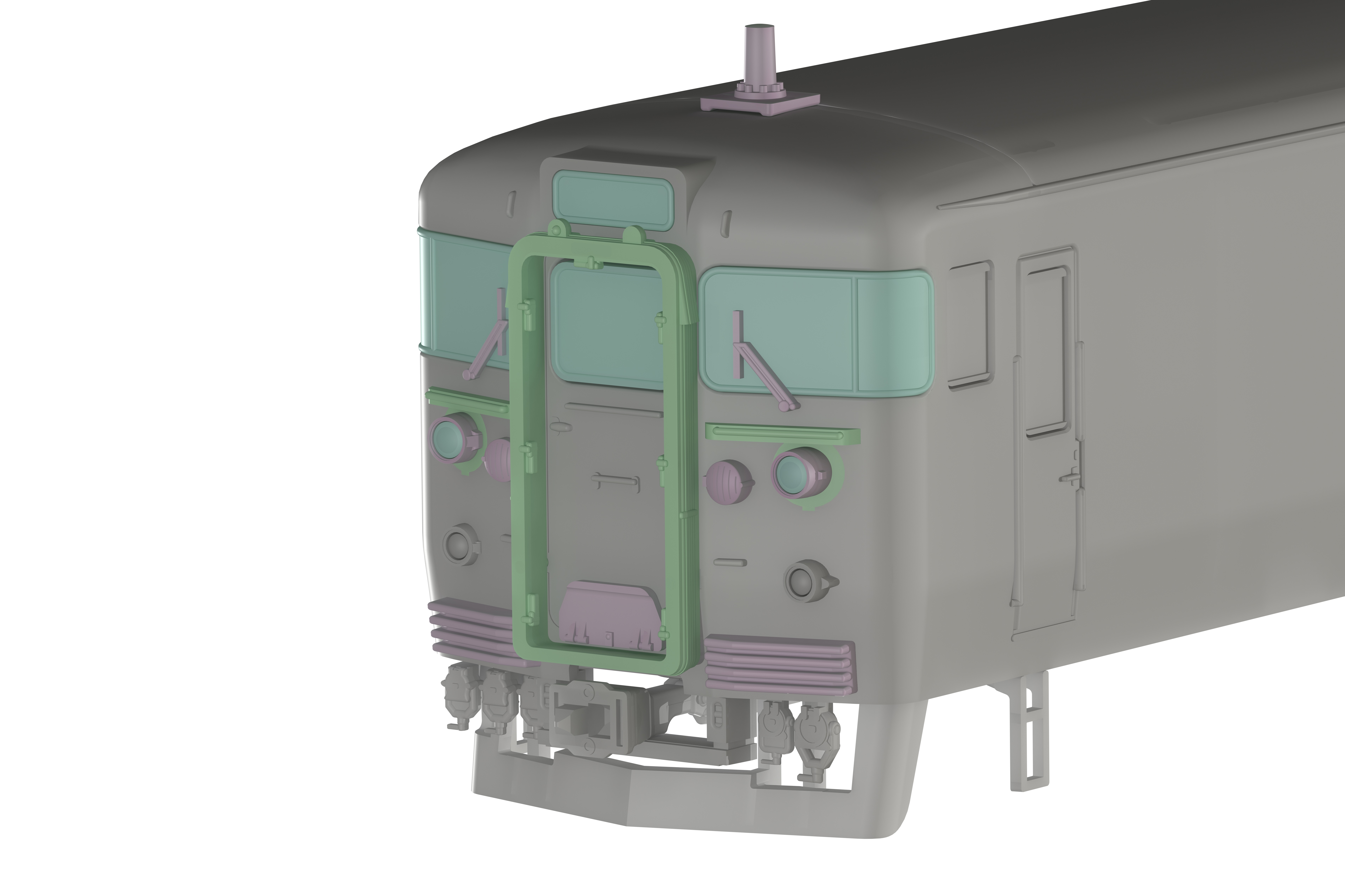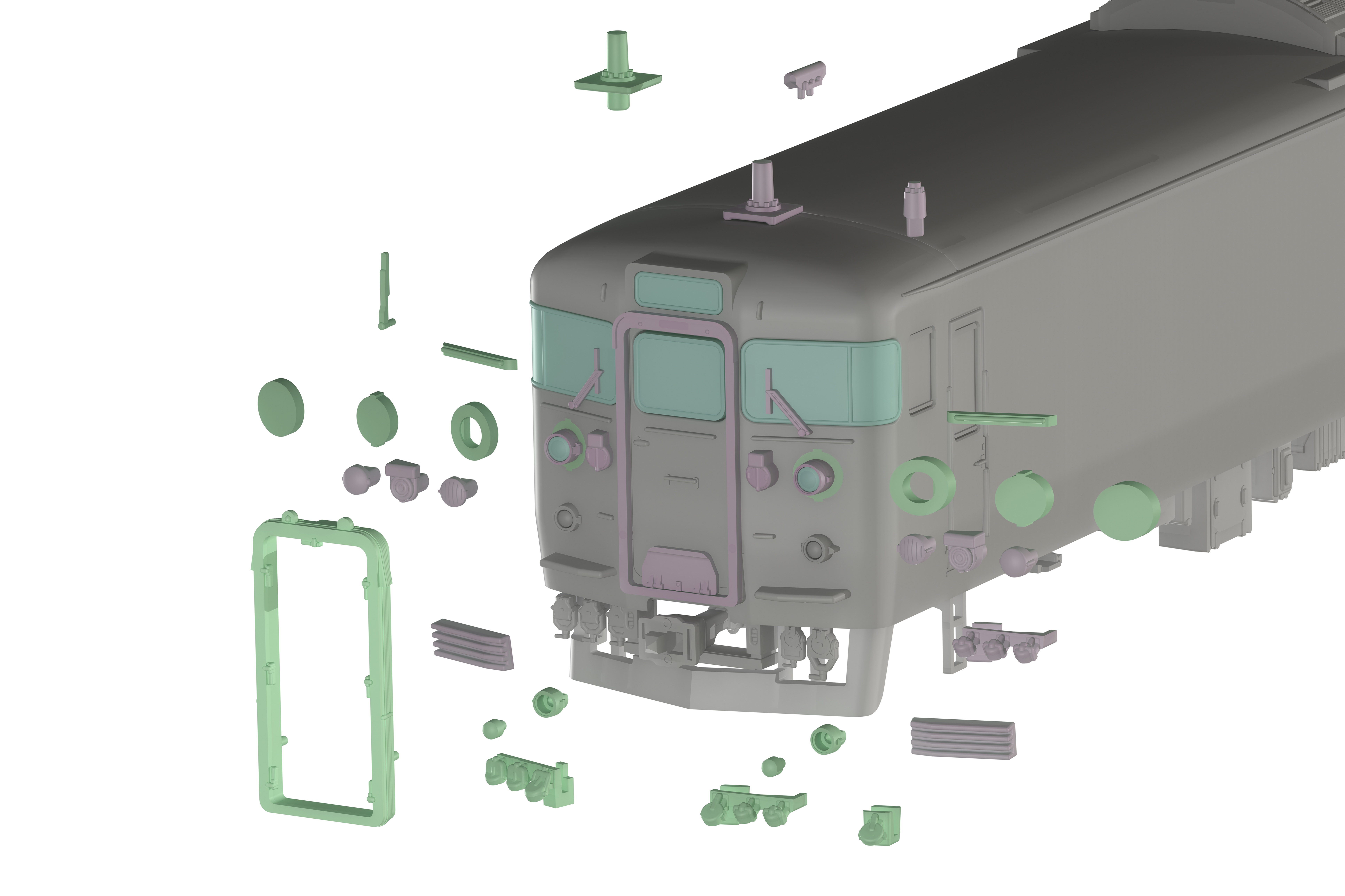 ・シールドビーム化、鉄仮面化、デフロスタ撤去化、169系化等想定したパーツ構成。