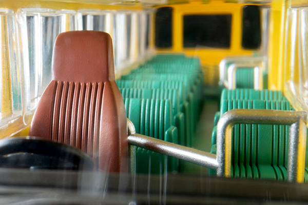 ●幼稚園バス専用の車体や室内を再現!